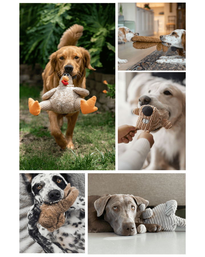 "Signature squeaky plush dog toys designed for maximum brand recall and repeat purchases – elevate your product line with unique design."